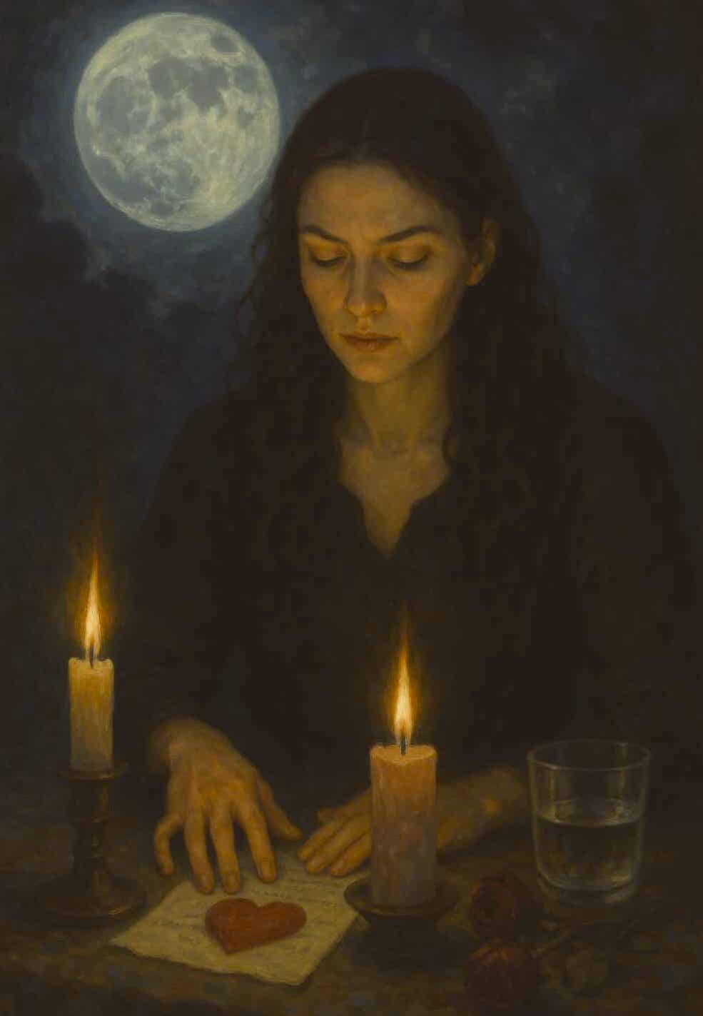 Κι έτσι έγινε. Το πρόσωπο που είχε φύγει εμφανίστηκε ξανά, μα εκείνη δεν ήταν πια η ίδια. Δεν ζητούσε, δεν περίμενε - ήξερε. Και εκείνη τη νύχτα, με τη σελήνη γεμάτη, το φως στο παράθυρό της σχημάτισε έναν κύκλο τέλειο, σαν σφραγίδα. Η μαγεία είχε ολοκληρωθεί - όχι γιατί έφερε πίσω κάποιον, αλλά γιατί την επανέφερε στον εαυτό της.