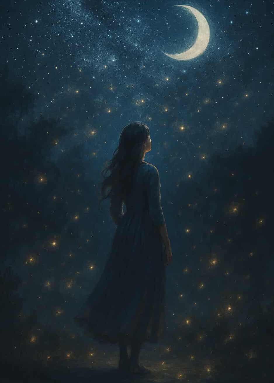 Μια νύχτα που τα άστρα χόρευαν σαν ψίθυροι φωτός, οι ψυχές που είχαν χαθεί στον χρόνο βρήκαν τον δρόμο τους ... Κάθε βήμα τους άφηνε πίσω ένα μυστικό, έναν ανεπαίσθητο ψίθυρο στον άνεμο, που ζητούσε να ξυπνήσει την καρδιά. Μια νεαρή γυναίκα στάθηκε σιωπηλή κάτω από το φεγγάρι και άκουσε: «Θυμάσαι;» — ένας ψίθυρος που ταξίδεψε μέσα της σαν φως και σκιά μαζί. Κι αμέσως, οι αναμνήσεις ξαναγεννήθηκαν: χαμόγελα που είχαν ξεχαστεί, δάκρυα που είχαν θαφτεί, επιθυμίες που περίμεναν κρυμμένες στις σκιές του χρόνου. Εκείνη τη νύχτα, κατάλαβε πως τίποτα δεν χάνεται ποτέ. Τα μυστικά, οι αγάπες, οι ψίθυροι του παρελθόντος περιμένουν τη στιγμή τους για να ξαναμιλήσουν, να ξαναφωτίσουν την καρδιά, να θυμίσουν ποιοι ήμασταν… και ποιοι μπορούμε να γίνουμε.